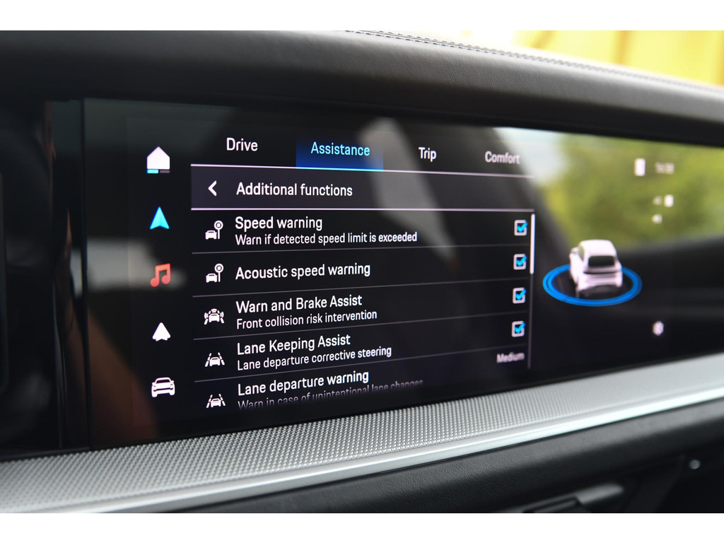 - Adaptieve cruise control met stuurhulp incl. noodgevalassistent en Lane Keeping Assist (Porsche Innodrive incl. Active Lane Keeping)